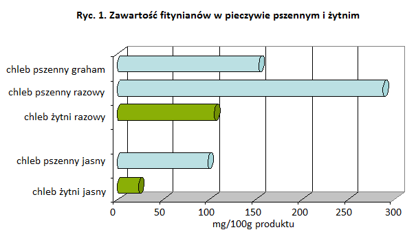 Oceniając wartość odżywczą pieczywa, także zwraca się uwagę na zawartość antyodżywczych fitynianów. Fityniany to sole kwasu fitynowego ze składnikami mineralnymi. Zawarty w nasionach zbóż kwas fitynowy łączy się z pierwiastkami – m. in, żelazem, cynkiem, wapniem, magnezem i manganem, prowadząc do obniżenia ich przyswajalności. To nie jest dobre dla naszego zdrowia. Jednak można temu zaradzić. Jak? W miarę prosty sposób. Podczas fermentacji w efekcie działanie fitazy, a także kwasu mlekowego, który powstaje podczas fermentacji, zawartość fityninów i jego soli znacząco się obniża, a związane z nimi składniki mineralne są uwalniane i mogą swobodnie być wchłaniane przez organizm. Zatem fermentacja szkodzi fitynianom. Dobrze im tak! A wniosek z tego jest prosty. Pieczywo żytnie, ponieważ jest na zakwasie (zachodzi fermentacja!) zawiera dużo więcej lepiej przyswajalnych składników mineralnych, niż pieczywo pszenne (także pszenne razowe) produkowane na drożdżach (ryc.1).