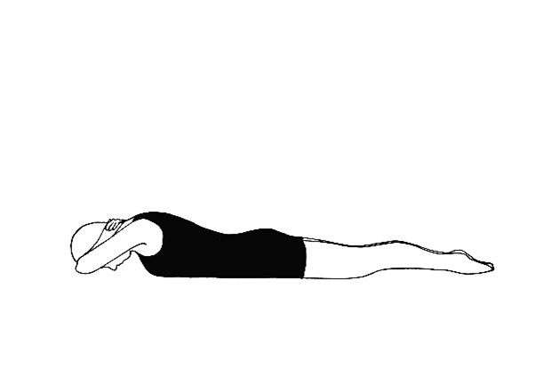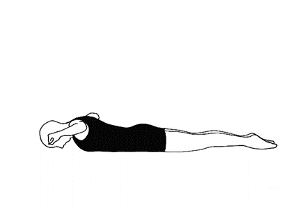 Połóż się na brzuchu z rękami i nogami wyprostowanymi. Unieś ręce, zegnij w łokciach i ściągnij je do tyłu, nie odrywając czoła od podłogi. Następnie powróć do pozycji wyjściowej.