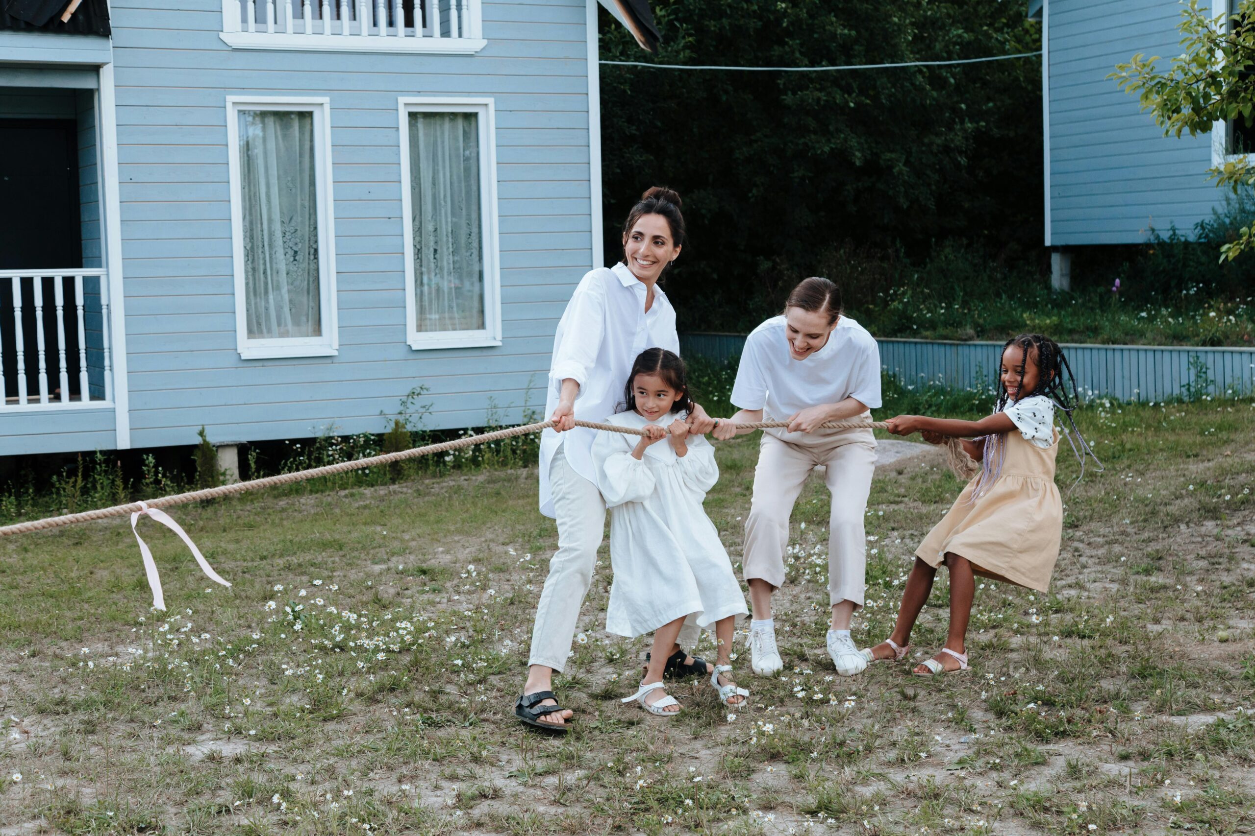 Przeciąganie liny. Jeden koniec liny trzyma tato drugi koniec mama z dziećmi. Walka o prymat w rodzinie, wygrywająca strona może przeciwnikom zadać w domu dwie dodatkowe prace domowe do wykonania.